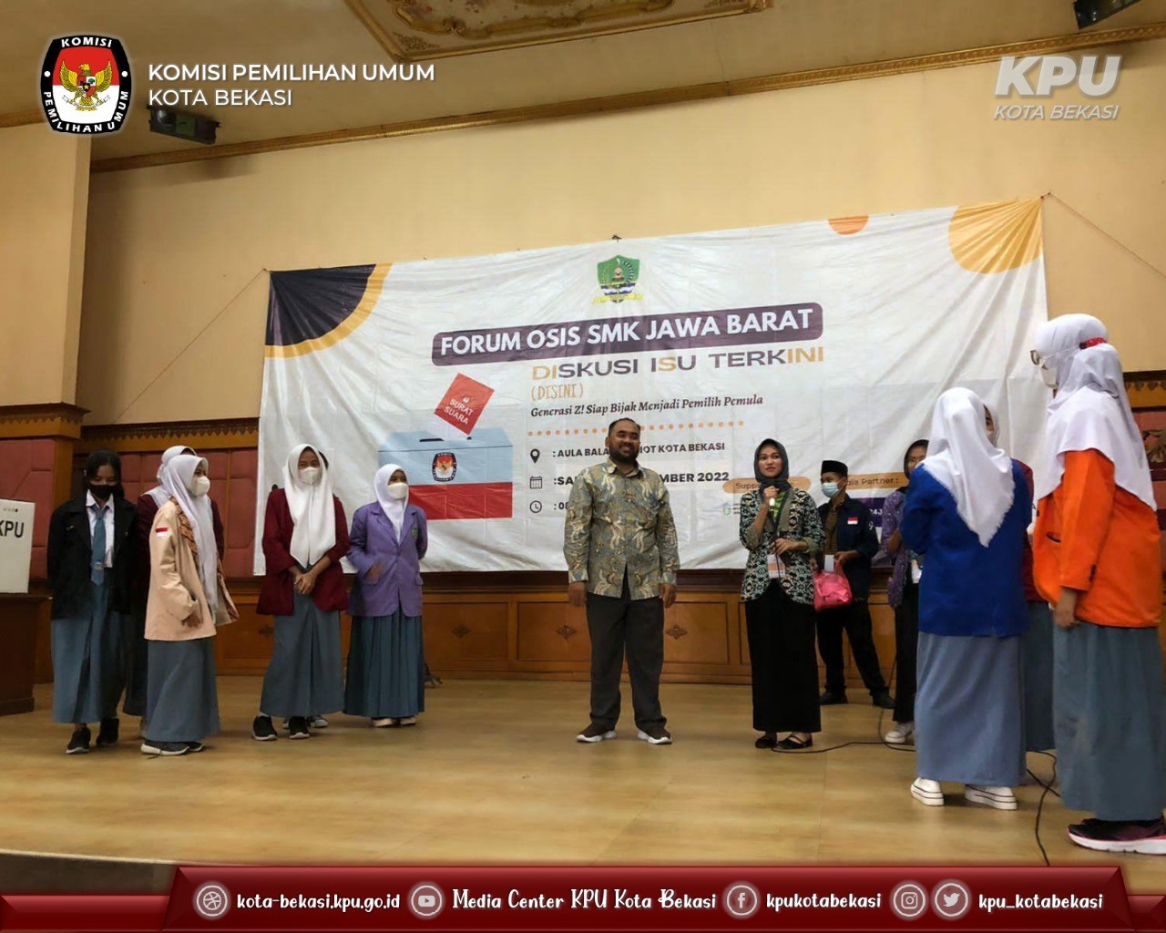 Bertempat di Balai Patriot Pemerintah Kota Bekasi Forum OSIS SMK Jawa Barat mengadakan kegiatan Diskusi Terkini dengan tema Generasi Z! Siap bijak menjadi pemilih Pemula, Sabtu (17/9). Peserta pada acara tersebut adalah pelajar Kota Bekasi yang berasal dari perwakilan siswa Sekolah Menengan Kejuruan (SMK) tergabung dalam Forum OSIS SMK Jawa Barat.