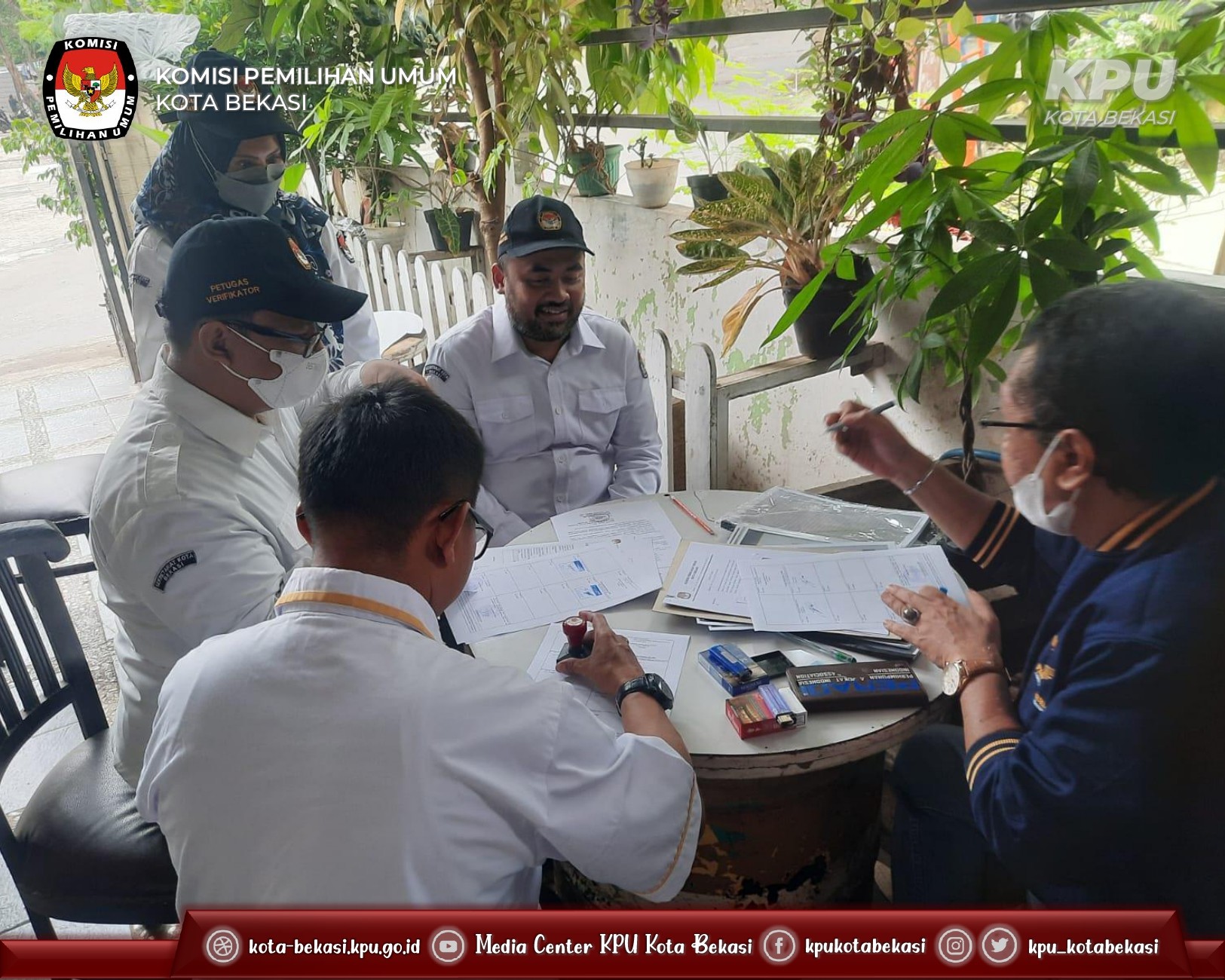 KPU Kota Bekasi melaksanakan Verifikasi Faktual Kepengurusan Partai Politik Tingkat Kota Bekasi Calon Peserta Pemilu Tahun 2024 ke kantor DPC Partai Garda Perubahan Indonesia (GARUDA), dipimpin Anggota KPU Kota Bekasi Pedro Purnama Kalangi, Senin (17/10/2022).