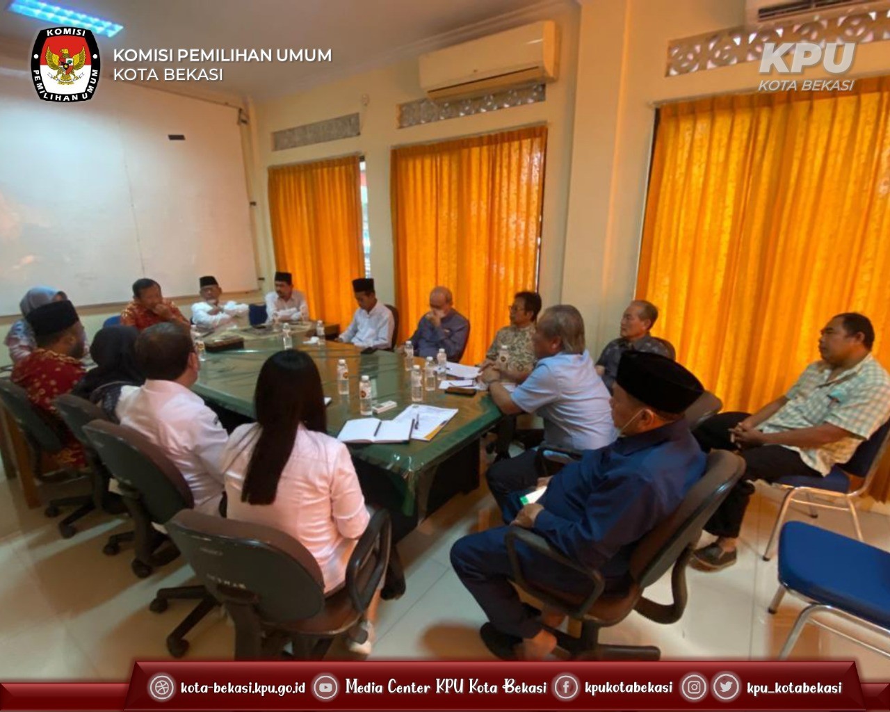 KPU Kota Bekasi yang dipimpin oleh Ketua KPU Kota Bekasi, Nurul Sumarheni diterima langsung oleh Ketua FKUB Kota Bekasi H. Abdul Manan beserta jajaran pengurus.