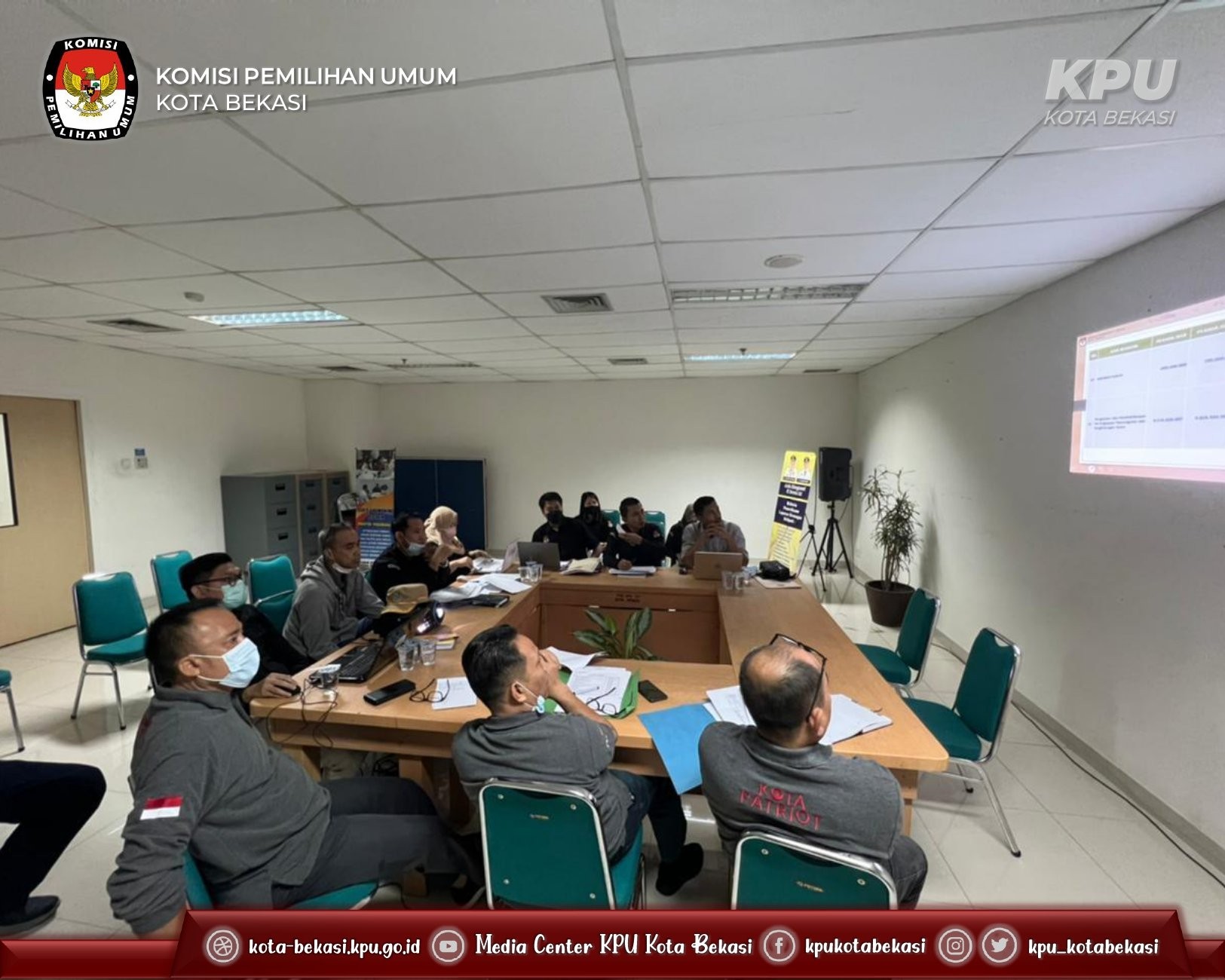 KPU Kota Bekasi beserta Sekretariat KPU Kota Bekasi menghadiri Undangan Rapat Koordinasi Sinkronisasi Anggaran Pilkada Kota Bekasi dengan Badan Kesbangpol Kota Bekasi, pada hari Rabu, (13/7), di Kantor Kesbangpol Kota Bekasi. Dalam Rapat Koordinasi tersebut KPU Kota Bekasi memberikan pemaparan terkait dasar pengajuan RAB Pilkada 2024.