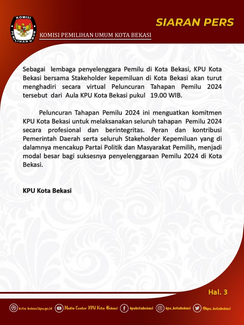 RILIS MEDIA PELUNCURAN TAHAPAN PEMILU 2024