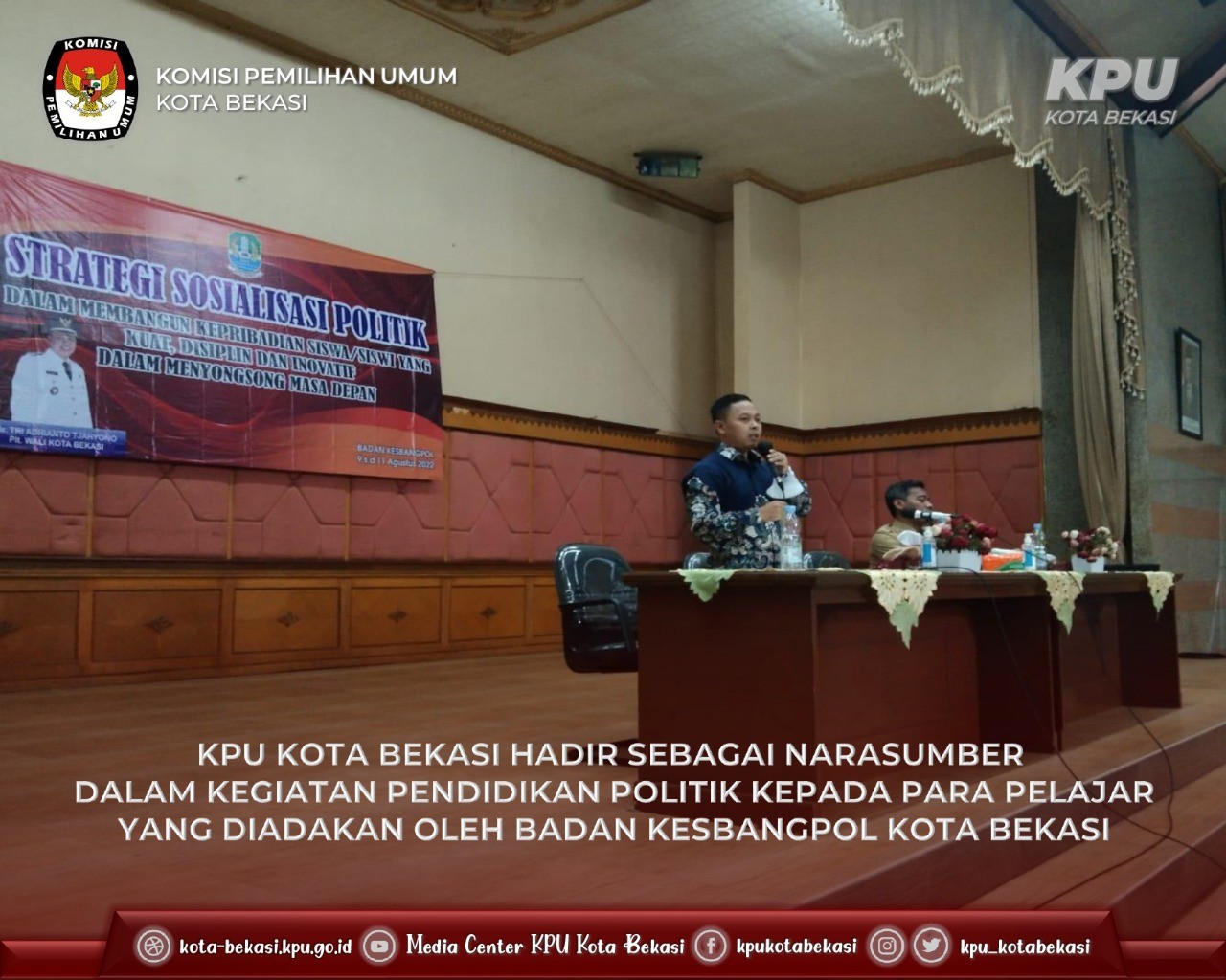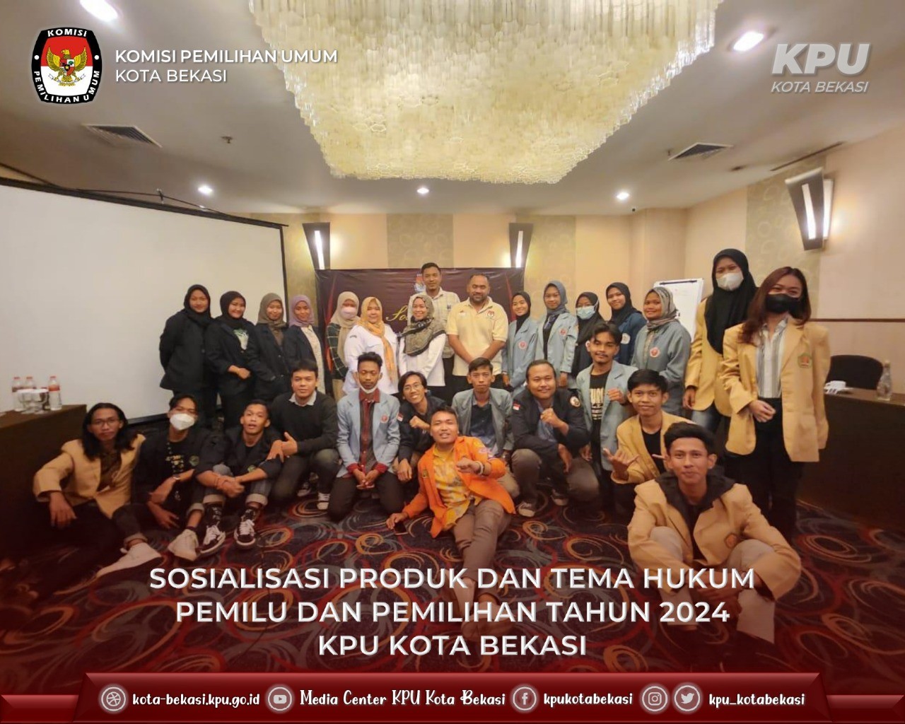 Komisi Pemilihan Umum Kota Bekasi menggelar Sosialisasi Produk dan Tema Hukum Pemilu dan Pemilihan Tahun 2024. Acara dilaksanakan di Hotel Horison Ultima Jl. KH. Noer Ali Bekasi Jawa Barat, Kamis (15/9). Kegiatan tersebut dihadiri oleh mahasiswa yang merupakan perwakilan dari berbagai perguruan tinggi di Kota Bekasi. Kegiatan dibuka oleh Ketua KPU Kota Bekasi Nurul Sumarheni, dalam sambutannya mensosialisasikan kepada para peserta tanggal pemungutan suara dan tahapan pelaksanaan Pemilu 2019, dan pada kesempatan yang sama beliau juga mengingatkan agar para mahasiswa yang hadir memastikan dirinya telah terdaftar sebagai pemilih dengan melakukan pengecekan pada portal lindungihakmu.go.id. Pada sesi sosialisasi Hadir sebagai Narasumber, komisioner KPU Kota Bekasi Achmad Edwin Sholihin , Komisioner Bawaslu Kota Bekasi Muhammad Iqbal Alam, dan Ketua Network for Indonesia Democratic Society (Netfid), Dahlia Umar. Materi pertama disampaikan oleh Achmad Edwin Sholihin komisioner KPU Kota Bekasi Achmad Edwin Sholihin, dalam pemaparannya beliau kembali mengulas tentang jadwal dan tahapan pelaksanaan pemilu 2019, sesi kedua disampaikan oleh Komisioner Bawaslu Kota Bekasi Muhammad Iqbal Alam, yang menjelaskan tentang Potnsi Kerawanan Dalam Tahapan Pemilu Serentak 2024. Pada sesi tersebut Iqbal mengajak kepada seluruh peserta hadir yang hadir untuk turut serta bersama Bawaslu dalam pengawasan partisipatif. Materi terakhir oleh Ketua Network for Indonesia Democratic Society (Netfid), Dahlia Umar mengusung tema “Memperkuat Partisipasi Pemilih”. Pada pukul 16.30 WIB, Acara ditutup oleh Moderator Indra Kusuma, dengan kesimpulan bahwa kesuksesan pemilu memerlukan partisipasi dari semua lapisan dan elemen masyarkat.