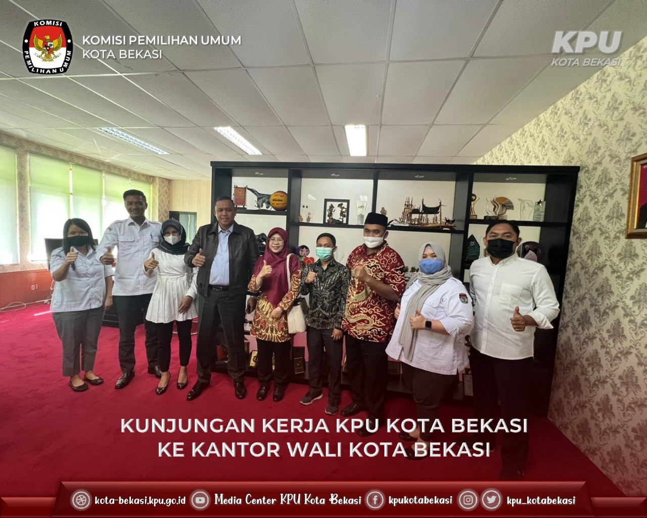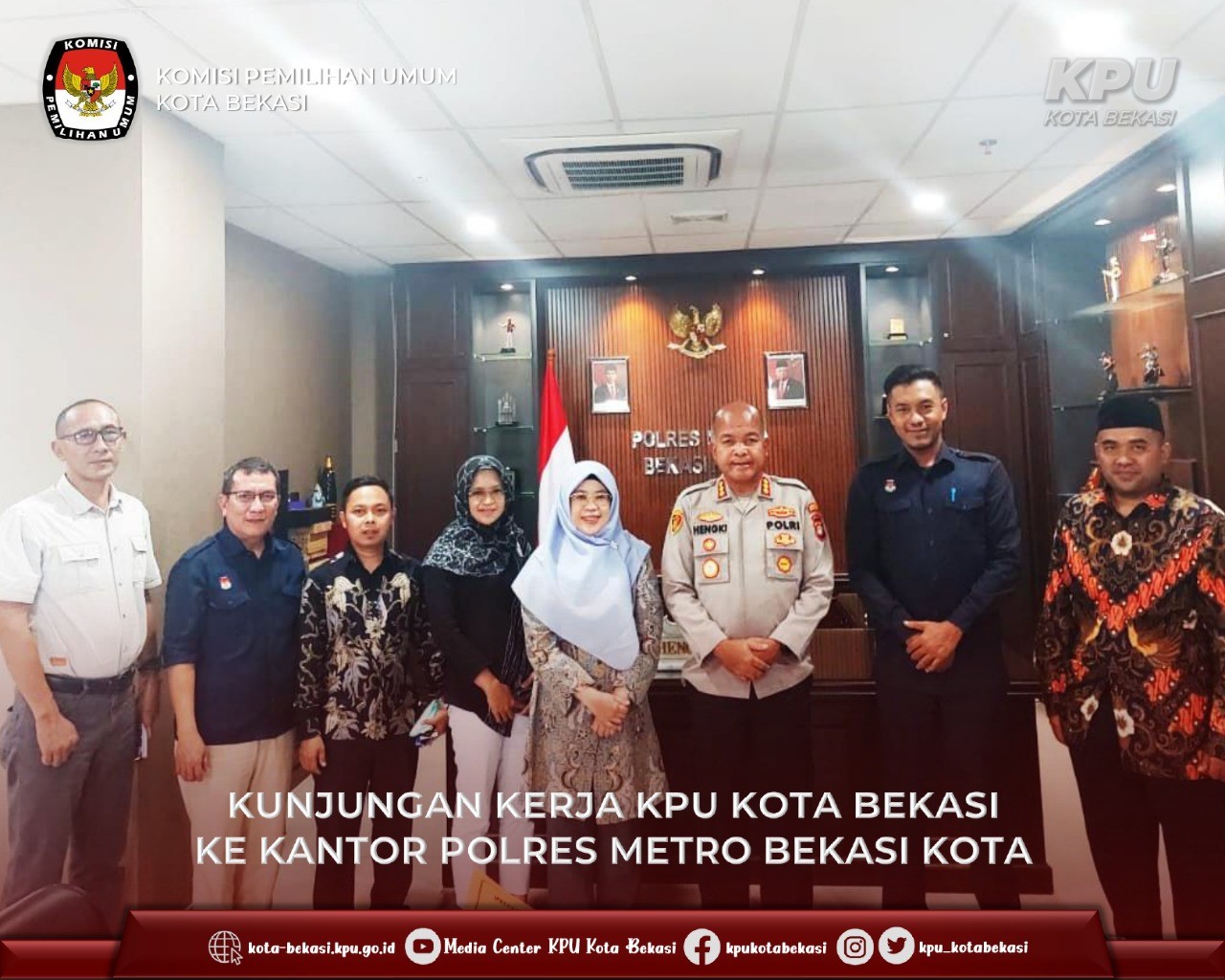 Ketua KPU Kota Bekasi beserta Anggota KPU Kota Bekasi didampingi Kasubag dan staf sekretariat melaksanakan koordinasi dengan Pengadilan Negeri Bekasi pada hari Selasa (28/06). Kunjungan ini bertujuan untuk membangun sinergitas kelembagaan antara KPU Kota Bekasi dan Forkopimda Kota Bekasi dalam rangka pelaksanaan tahapan Pemilu 2024.