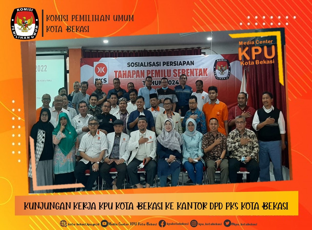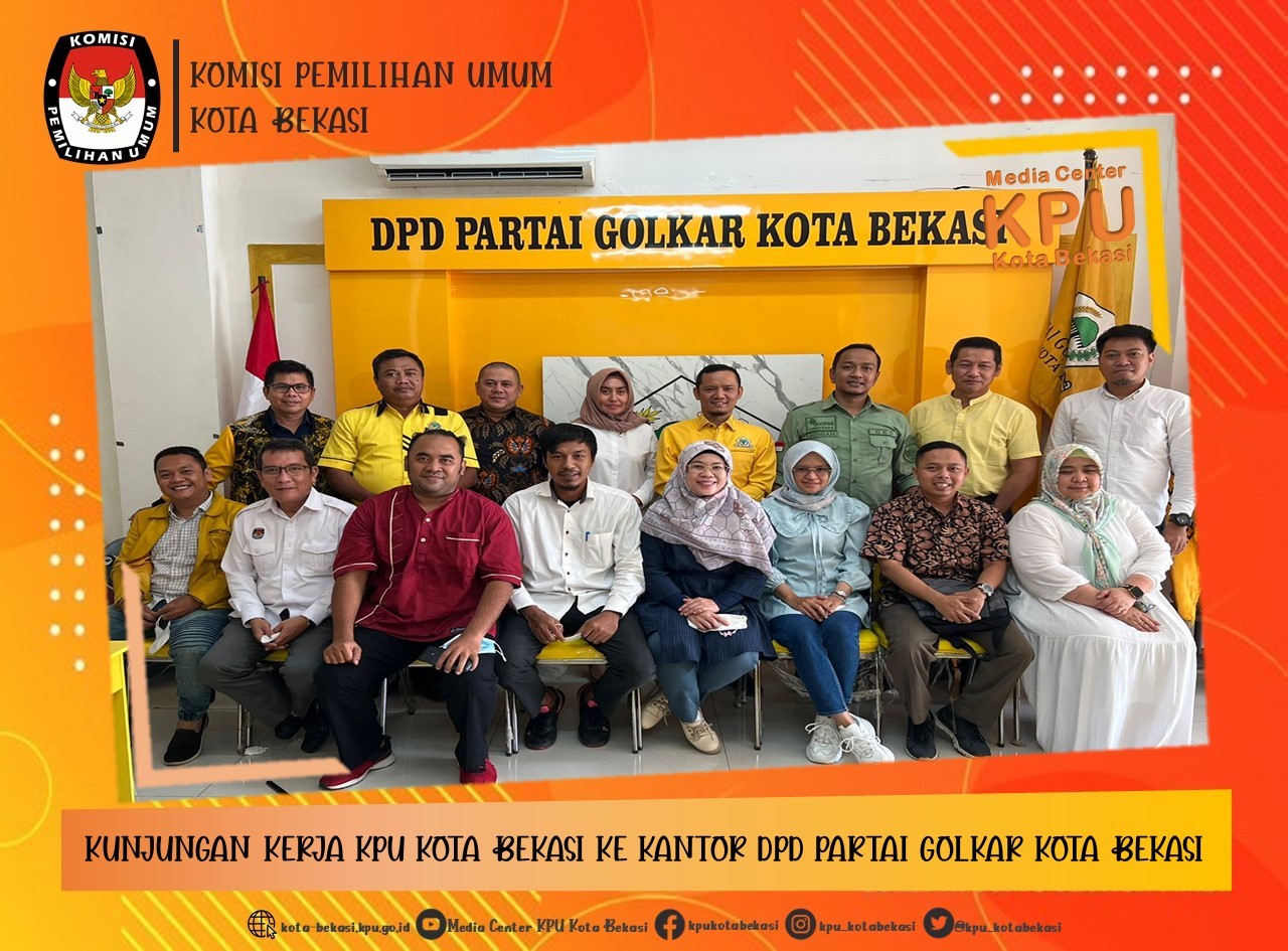 Komisi Pemilihan Umum ( KPU ) Kota Bekasi mulai kembali melakukan kunjungan ke partai politik di Kota Bekasi. Kali ini kunjungan dilakukan di Kantor DPD Golkar Kota Bekasi, Senin (28/03/2022). Kunjungan yang dilakukan oleh KPU Kota Bekasi tersebut diterima oleh jajaran pengurus DPD Partai Golkar Kota Bekasi. Kunjungan KPU Kota Bekasi ini dalam rangka mensosialisasikan Keputusan Komisi Pemilihan Umum Republik Indonesia Nomor 21 Tahun 2022 Tentang Hari dan Tanggal Pemungutan Suara Pada Pemilihan Umum Presiden dan Wakil Presiden, Anggota Dewan Perwakilan Rakyat, Anggota Dewan Perwakilan Daerah, Anggota Dewan Perwakilan Rakyat Daerah Provinsi, dan Anggota Dewan Perwakilan Rakyat Daerah Kabupaten/Kota Serentak Tahun 2024. Selain itu kunjungan ini sebagai upaya untuk membangun sinergitas antara KPU Kota Bekasi selaku penyelenggara Pemilu dan partai politik selaku peserta pemilu. Kegiatan kunjungan kerja ini diisi diskusi dan tanya jawab terkait informasi tahapan-tahapan Pemilu 2024.