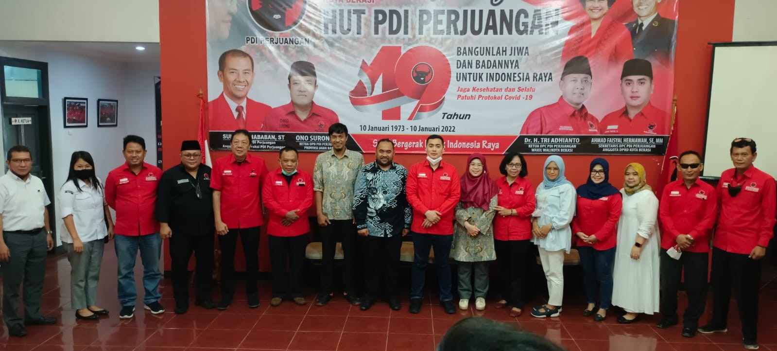 Pada hari Kamis (17/3), Komisi Pemilihan Umum (KPU) Kota Bekasi kembali melakukan kunjungan ke sejumlah kantor partai politik. Kali ini, KPU mendatangi kantor DPC PDI Perjuangan Kota Bekasi. Ketua KPU Kota Bekasi Nurul Sumarheni mengatakan, kunjungan ini sebagai sosialisasi dan persiapan dalam menghadapi tahapan Pemilu dan Pemilihan 2024. Kunjungan yang dilakukan oleh KPU Kota Bekasi tersebut diterima oleh Sekretaris, Bendahara dan beserta jajaran pengurus DPC PDI Perjuangan Kota Bekasi. Sekretaris DPC PDI Perjuangan Kota Bekasi Ahmad Faisyal Hermawan mengatakan, Partai PDI Perjuangan Kota Bekasi menyambut baik kedatangan rombongan KPU Kota Bekasi. DPC PDI Perjuangan Kota Bekasi juga mendukung berbagai kegiatan positif yang dilaksanakan oleh KPU Kota Bekasi dalam hal mensosialiasikan tahapan Pemilu dan Pemilihan 2024, PDI Perjuangan Kota Bekasi juga mendukung segala bentuk program kerja KPU Kota Bekasi dalam rangka mewujudkan proses demokrasi yang jujur, bersih dan berkeadilan. Di akhir kunjungan, Nurul Sumarheni mendorong DPC PDI Perjuangan untuk ikut berperan serta dalam proses pemutakhiran daftar pemilih berkelanjutan.“Jika ada anggota yang saat ini baru berusia 17 tahun, pengurus DPC PDI Perjuangan Kota Bekasi bisa melaporkan agar dimasukkan dalam daftar pemilih berkelanjutan “, pesannya.