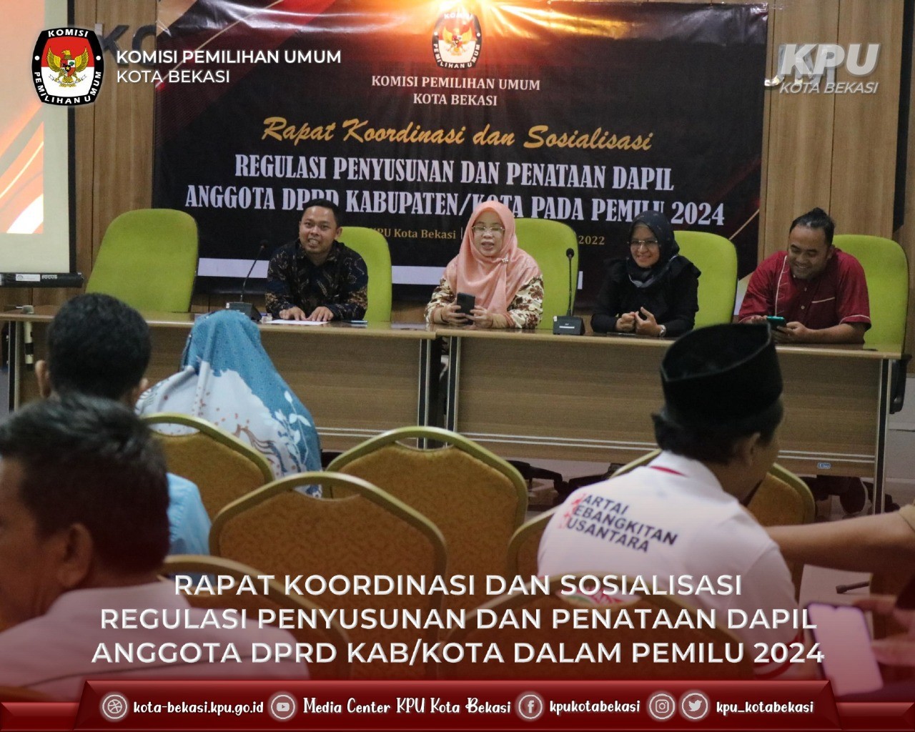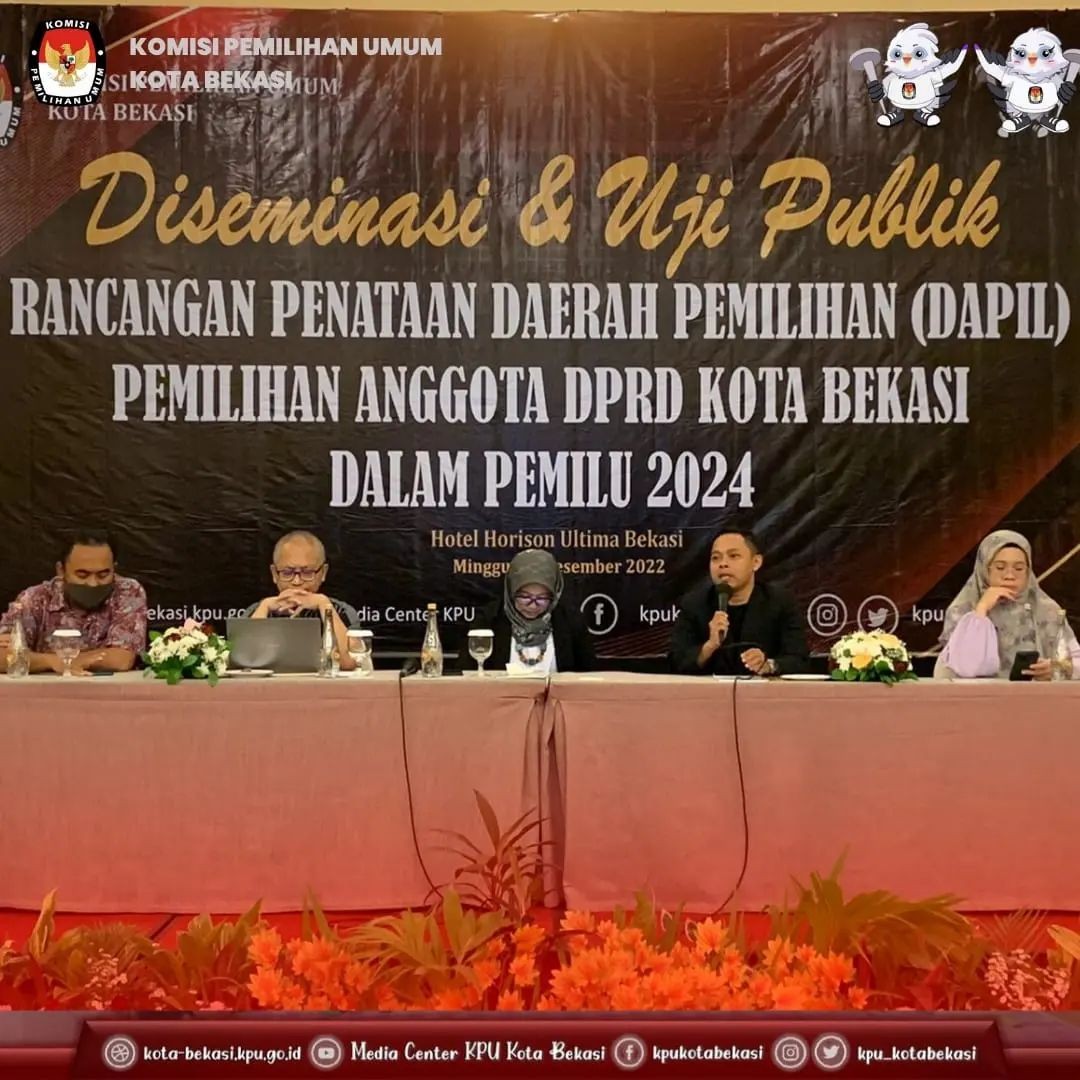 Ketua KPU Kota Bekasi Nurul Sumarheni menjelaskan, dasar hukum kegiatan itu salah satunya Keputusan KPU Nomor 488 Tahun 2022, tentang Pedoman Teknis Penataan Dapil dan Alokasi Kursi Anggota DPRD Kabupaten/Kota dalam Pemilu. Saat ini KPU telah memasuki tahapan penataan dapil dan penataan alokasi kursi untuk pemilihan DPRD Kabupaten/Kota dalam Pemilu 2024. Untuk diketahui, dapil atau daerah pemilihan merupakan batas wilayah/area kompetisi. “Maka uji publik penting dilaksanakan, untuk menghimpun masukan dan tanggapan dari para pemangku kepentingan terkait,” kata Nurul.