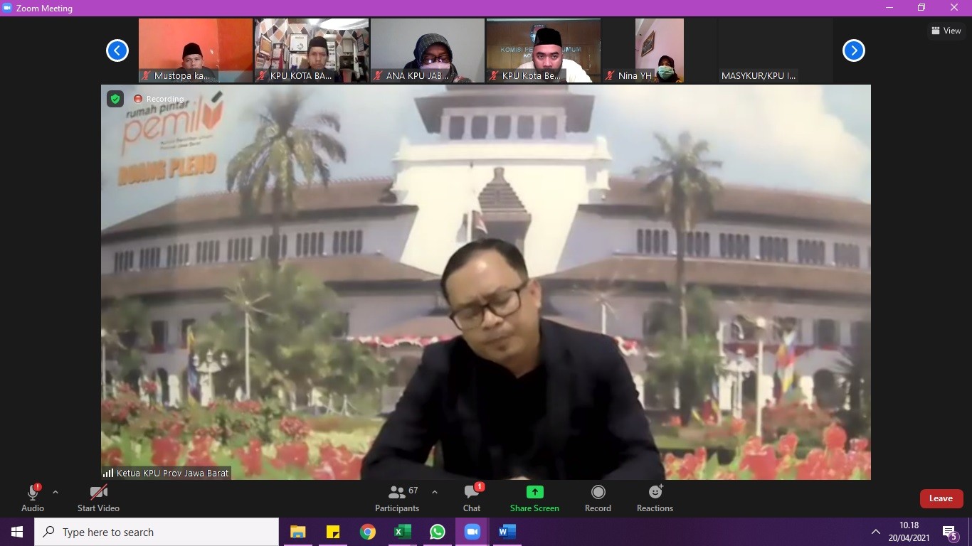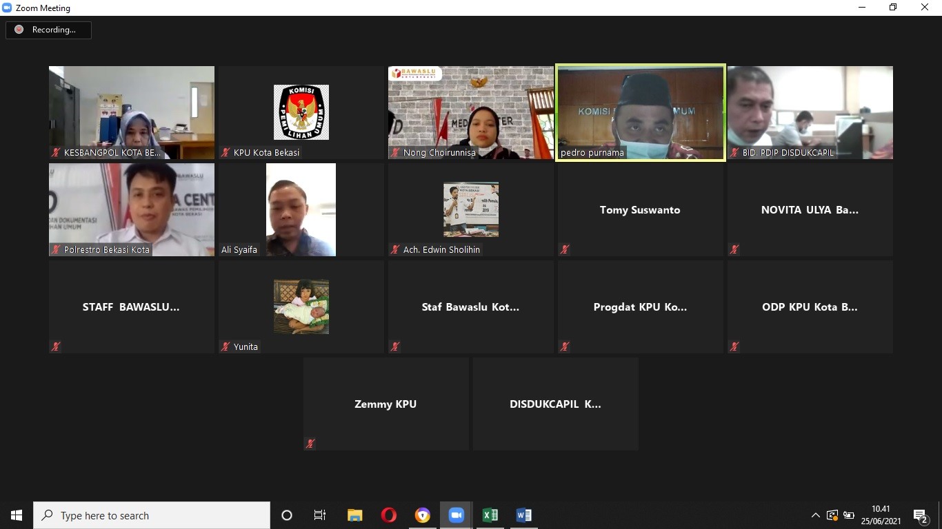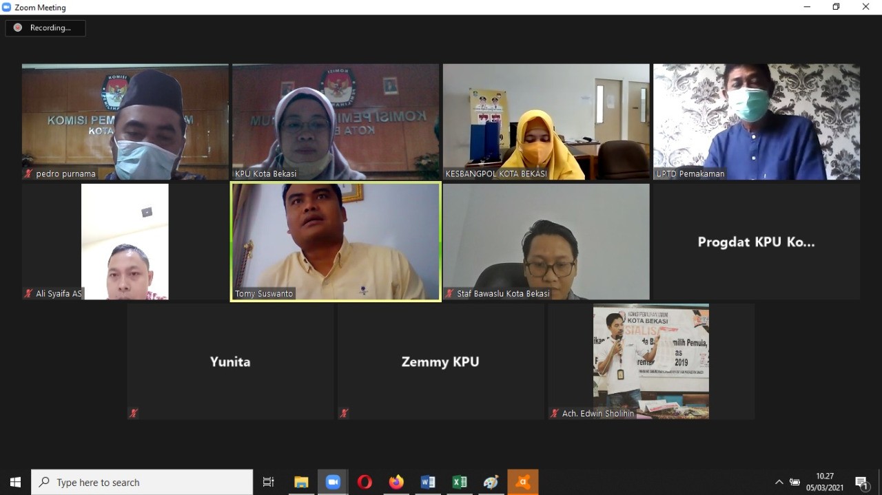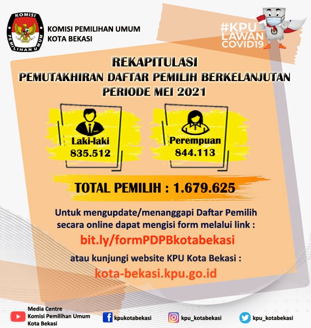 KPU Kota Bekasi telah melaksanakan Rekapitulasi Daftar Pemilih Berkelanjutan Tahun 2021 periode bulan Juni & Triwulan II. Rekapitulasi Daftar Pemilih Berkelanjutan Tahun 2021 periode bulan Juni & Triwulan II dilaksanakan melalui Rapat Koordinasi KPU Kota Bekasi bersama dengan stakeholder terkait menggunakan aplikasi Zoom Meeting yang dihadiri oleh Bawaslu, Disdukcapil, Polres Metro Bekasi Kota, Kesbangpolinmas, dan Komisioner beserta jajaran Sekretariat KPU Kota Bekasi. Rekapitulasi dilaksanakan berdasarkan ketentuan Surat Edaran Ketua KPU RI Nomor 366/PL.02.1-SD/01/KPU/IV/2021 tanggal 21 April 2021 perihal Perubahan Surat KPU RI Nomor 132/PL.02.1-SD/01/KPU/II/2021 Perihal Pemuktahiran Data pemilih Berkelanjutan Tahun 2021. Berdasarkan ketentuan surat edaran KPU RI tersebut KPU Kab/Kota melakukan Rapat Koordinasi Rekapitulasi Daftar Pemilih Berkelanjutan setiap 3 bulan (per Triwulan) bersama dengan stakeholder terkait yaitu Partai Politik, Bawaslu, Dinas yang menangani urusan Kependudukan dan Pencatatan Sipil, serta instansi terkait lainnya dan menyampaikan hasil rekapitulasi serta Daftar Pemilih Berkelanjutan yang mengalami perubahan setiap bulan by name by polling station (Formulir Model A.1-DPB) kepada Partai Politik, Bawaslu, dan dinas yang menangani urusan kependudukan dan catatan sipil setempat. Jumlah pemilih yang telah dilakukan pencermatan dan direkap pada Rapat Rekapituasi Daftar Pemilih Berkelanjutan Tahun 2021 periode bulan Juni & Triwulan II adalah sebanyak 1.679.648 pemilih, dengan rincian pemilih laki-laki berjumlah 835.587 pemilih dan pemilih perempuan berjumlah 844.061 pemilih yang tersebar di 12 Kecamatan se Kota Bekasi. Terdapat Potensi Pemilih Baru pada periode Juni sebanyak 252 pemilih yang merupakan data Pensiun TNI dan Polri. Data potensi pemilih baru tersebut bersumber dari data yang diberikan oleh Dinas Kependudukan dan Pencatatan Sipil Kota Bekasi Semester 2 tahun 2020. Selain itu terdapat Pemilih yang Tidak Memenuhi Syarat (TMS) sebanyak 229 Pemilih karena meninggal dunia berdasarkan pencermatan data yang diberikan oleh UPTD Pemakaman Kota Bekasi. KPU Kota Bekasi berterima kasih dan menyampaikan apresiasi kepada seluruh stakeholder yang terlibat dan berharap dapat terus bersinergi bersama dalam melakukan Pemutakhiran Daftar Pemilih Berkelanjutan Tahun 2021 untuk mewujudkan data pemilih yang makin berkualitas di Kota Bekasi.