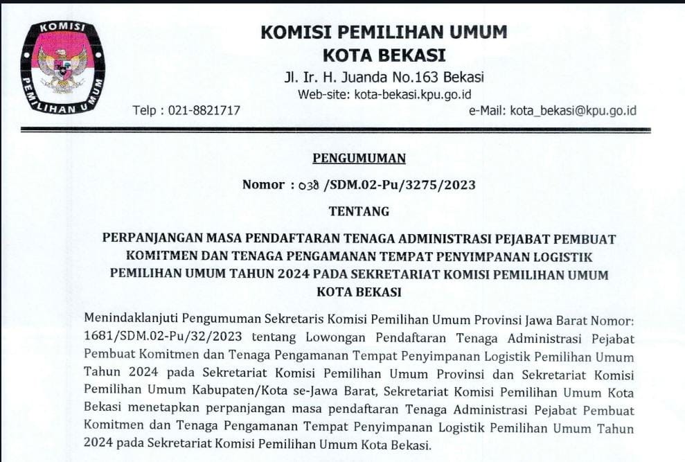 Ayo pastikan Dokumen Persyaratan terpenuhi dan mari kita sukseskan Pemilihan Umum Serentak 2024 di Indonesia khususnya di Kota Bekasi.