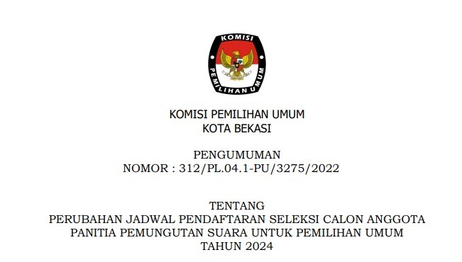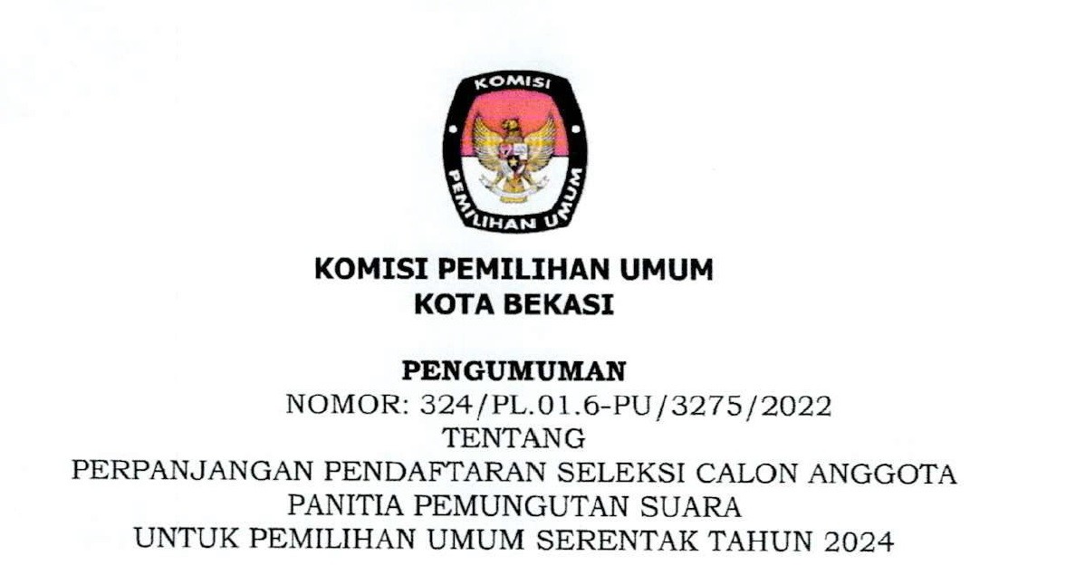 Berdasarkan Keputusan Komisi Pemilihan Umum Nomor 534 Tahun 2022 tentang Perubahan atas Keputusan Komisi Pemilihan Umum Nomor 476 Tahun 2022 tentang Pedoman Teknis Pembentukan Badan Adhoc Penyelenggara Pemilihan Umum dan Pemilihan Gubemur dan Wakil Gubemur Bupati dan Wakil Bupati dan Walikota dam Wakil Walikota, menyampaikan bahwa perpanjangan pendaftaran dilakukan dalam hal sampai dengan masa pendaftaran berakhir tidak ada peserta yang mendaftar atau kurang dari 2(dua) kali jumlah PPS yang dibutuhkan, membuka 1 (satu) kali perpanjangan waktu pendaftaran selama 3 (tiga) Hari. Info selengkapnya KLIK DISINI